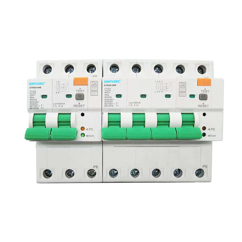 लीकेज प्रोटेक्शन: STRO6-80B RCBO एक सर्किट में अवशिष्ट वर्तमान (यानी, रिसाव करंट) का पता लगाने में सक्षम है। जब अवशिष्ट वर्तमान सेट सीमा से अधिक हो जाता है, तो RCBO B मॉडल 2P 4P 4P अवशिष्ट वर्तमान सर्किट ब्रेकर इलेक्ट्रोक्यूशन दुर्घटनाओं और विद्युत आग को रोकने के लिए बहुत कम समय में सर्किट को काट देगा।